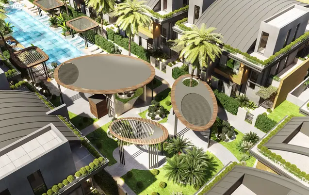 Özel tasarım ortak havuz ve güneşlenme terasları